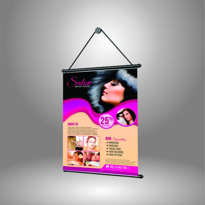 Balcões de RetiradaBanner Lona Frontlight 440g Brilho - 4x0 - Bastão, Ponteira e Cordão.