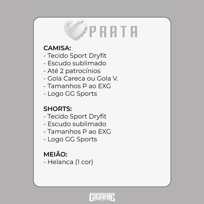 Kit prata - 60 peças - 20 camisas - 20 shorts - 20 meiões